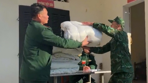 Đồn Biên phòng Na Ngoi cấp phát thêm chăn ấm bảo đảm sức khỏe cho bộ đội trong điều kiện giá rét đậm, kéo dài. (Ảnh: LÊ THẠCH) |