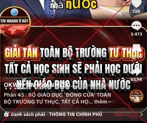 Bộ GD&ĐT khẳng định đây là những thông tin sai sự thật, bịa đặt, xuyên tạc, gây nhiễu loạn thông tin, làm ảnh hưởng xấu đến tâm lí của người dân, phụ huynh, học sinh cũng như hoạt động của các cơ sở giáo dục.