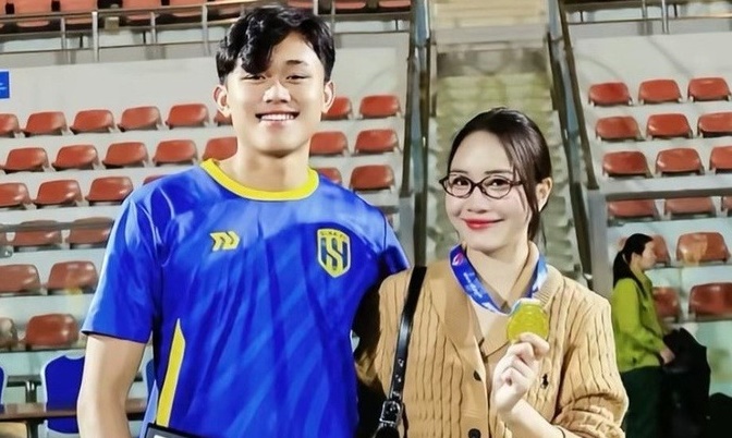 Nguyễn Bảo Ngọc, thủ môn hay nhất giải U19 quốc gia, gây chú ý khi khoe hình ảnh ngọt ngào cùng bạn gái là thí sinh cuộc thi Hoa khôi ĐH Vinh.