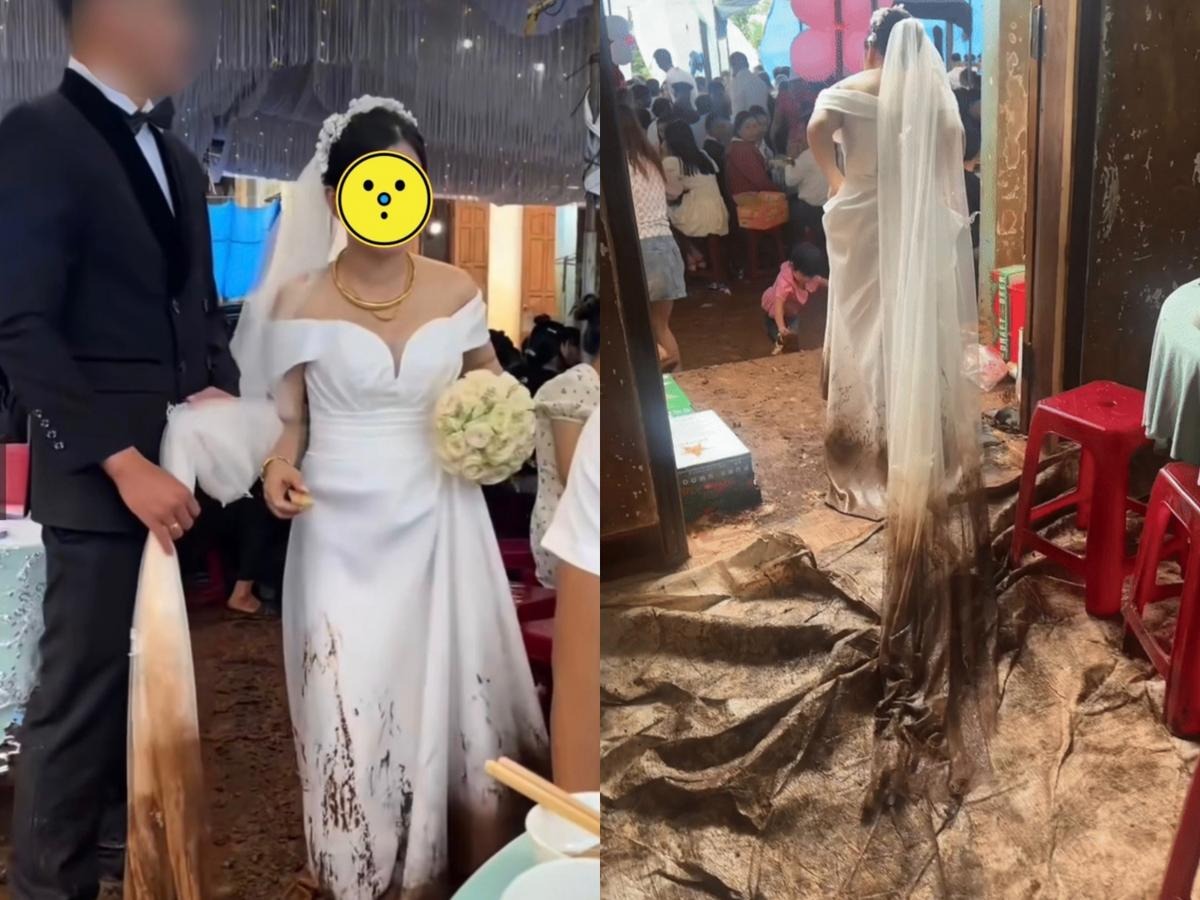 Clip cô dâu lội bùn tiếp khách trong ngày cưới khiến cộng đồng mạng xôn xao