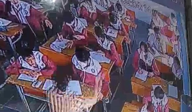 Camera ghi lại cảnh cô giáo tát 2 cái vào mặt nam học sinh nhưng theo lãnh đạo nhà trường thì nữ giáo viên này không thừa nhận