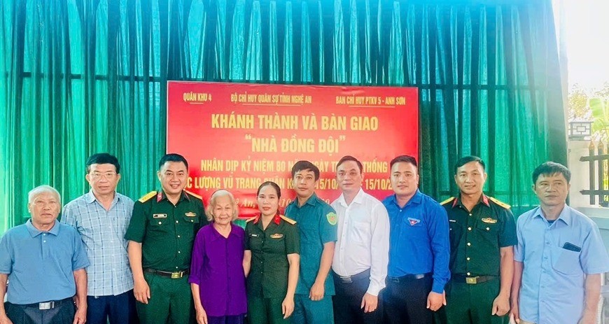 Sáng 11-10, Đại tá Trần Văn Hùng, Phó bí thư Đảng ủy, Chỉ huy trưởng Ban chỉ huy Phòng thủ Khu vực 5 - Anh Sơn (Bộ CHQS tỉnh Nghệ An) cho biết, đơn vị vừa phối hợp với chính quyền địa phương tổ chức bàn giao “Nhà đồng đội” cho quân nhân có hoàn cảnh khó khăn.
