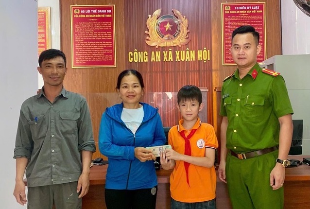 Sau khi nhặt được 61 triệu đồng tiền mặt, cháu Hoàng Đức Duy ở Hà Tĩnh đã cùng bố đến Công an xã để nhờ trao trả lại cho người đánh rơi.
