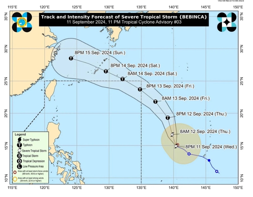 Áp thấp nhiệt đới gần Philippines đã mạnh lên thành bão Bebinca, cách bờ biển Đông Eastern Visayas của nước này khoảng 2.105km tính tới 22h ngày 10-9.