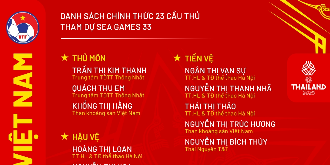 Năm cái tên phải nói lời chia tay U22 Việt Nam trước thềm SEA Games 33 gồm Bùi Vĩ Hào, Trần Thành Trung, Nguyễn Đức Việt, Lê Văn Hà và Đinh Quang Kiệt.