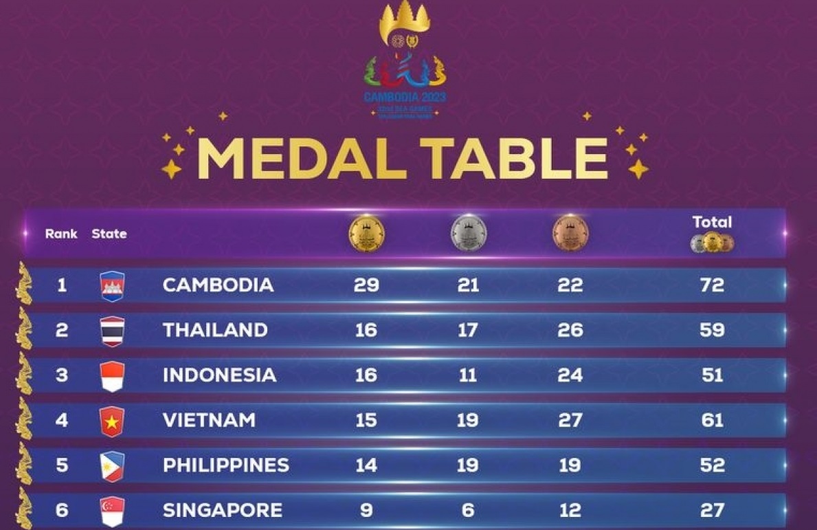 Bảng tổng sắp huy chương SEA Games 32 mới nhất: Việt Nam vươn lên thứ 4