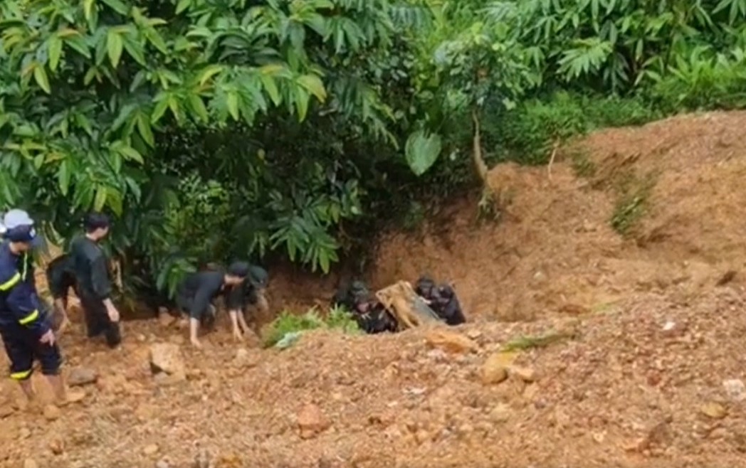 Toàn cảnh đào bới đất đá tìm kiếm nạn nhân xe khách 16 chỗ bị vùi lấp