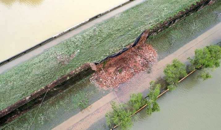 Di tích Đại nội Huế bên trong Kinh thành Huế bị lũ xô sập một mảng tường thành dài khoảng 15m.