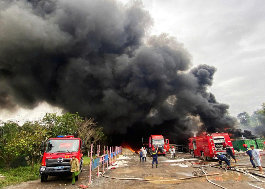 Cột khói đen bốc lên ngùn ngụt tại nhà máy bia Hà Nội sáng 1-12. Lực lượng chức năng đang nỗ lực khống chế vụ cháy và cứu nạn cứu hộ.