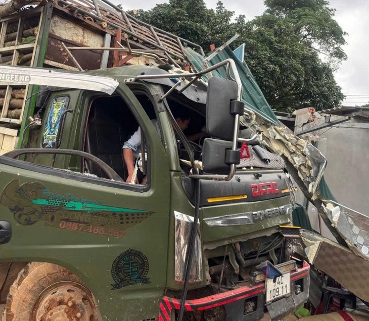 Khi đang đổ đèo Bảo Lộc, xe đầu kéo chở alumin mất thắng va chạm với 2 ô tô rồi cuốn một xe máy vào gầm.
