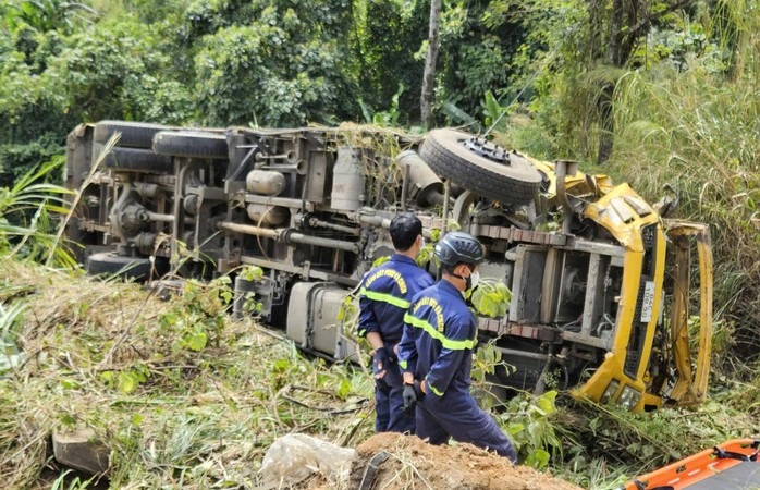 Khi lưu thông qua đèo Bảo Lộc, xe tải bất ngờ mất phanh, lao xuống vực khiến tài xế tử vong, mắc kẹt trong cabin.