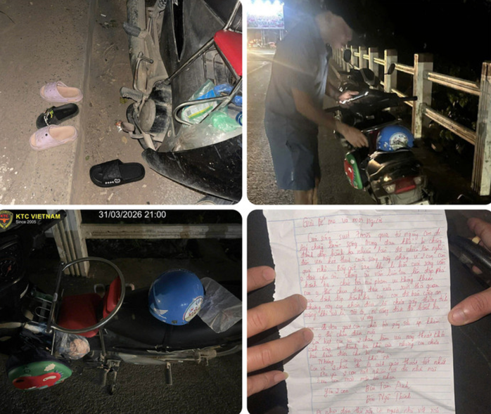Người dân phát hiện một chiếc xe máy cùng bức thư "tuyệt mệnh" với nội dung bị chồng hành hạ và mong được giải thoát cùng 2 con.