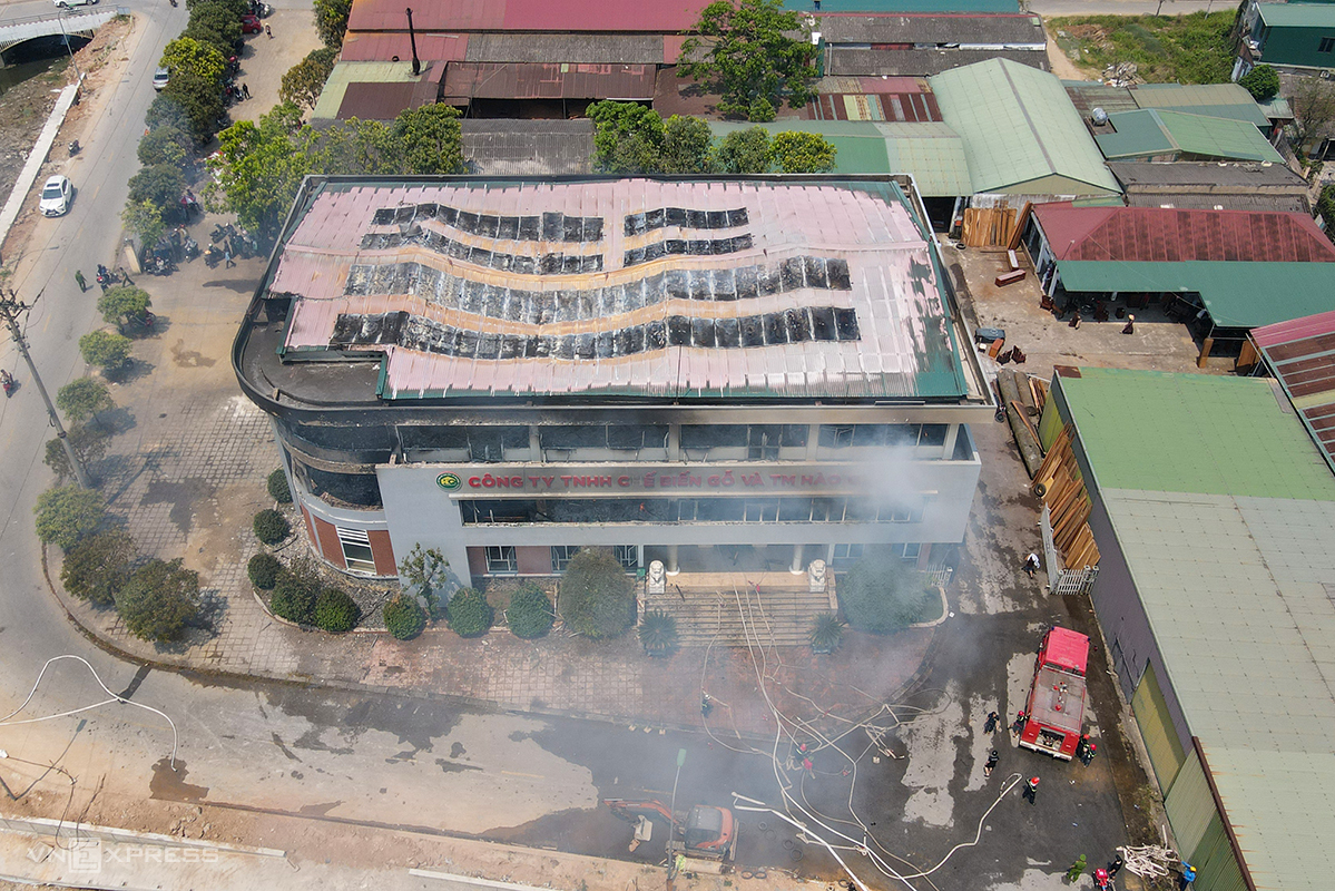 Khu trưng bày sản phẩm rộng hàng nghìn mét vuông của công ty gỗ ở phường Thành Sen bốc cháy dữ dội, trưa 12/4.