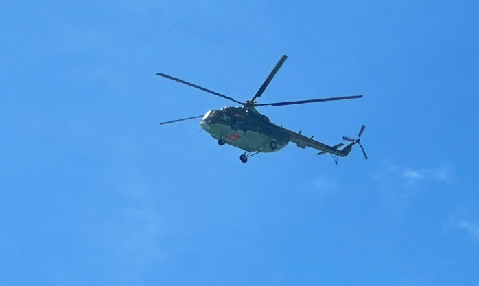 12 giờ trưa 7-11, trực thăng quần thảo trên vùng biển Lý Sơn tìm kiếm 3 người mất tích chiều 6-11.