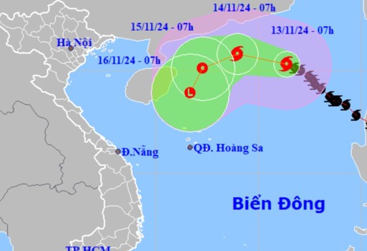 Bão số 7 sẽ đi vào vùng biển khu vực từ Quảng Ninh đến Bình Định và suy yếu dần thành áp thấp nhiệt đới rồi đổ bộ các tỉnh từ Quảng Ngãi đến Phú Yên