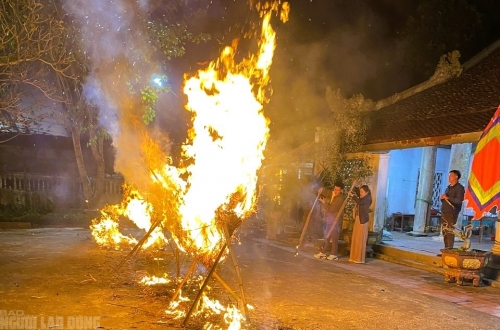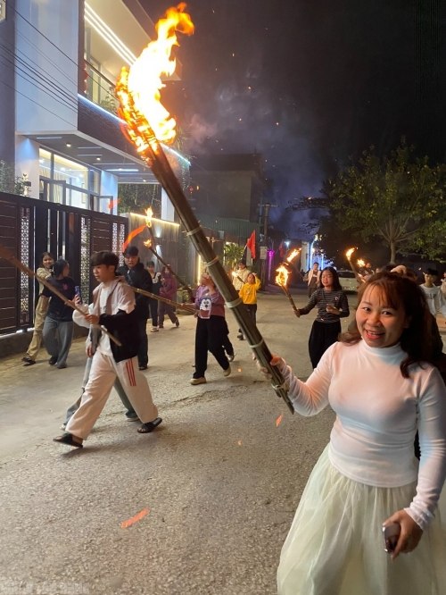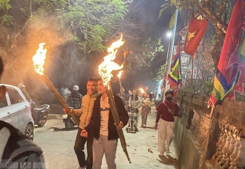 Người dân mang đuốc tới xin lửa rực sáng cả đình làng |