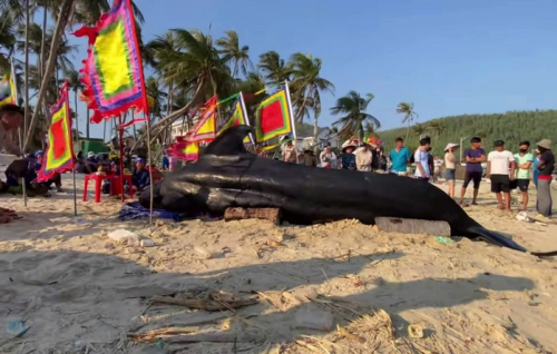 Trước đó, vào khoảng 13 giờ cùng ngày, ngư dân địa phương phát hiện một cá Ông dài khoảng 10 m, ước nặng khoảng 2 tấn, dạt vào sát bờ biển.