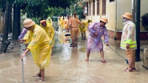 Các tổ công tác chia thành nhiều nhóm nhỏ, tập trung thu gom bùn đất, vệ sinh trường học, trạm y tế, khu dân cư, góp phần nhanh chóng phục hồi các hoạt động sinh hoạt thiết yếu.