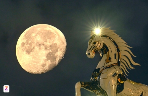 Trước đó, hình ảnh thân chú ngựa 4.0 phát sáng được lan truyền trên mạng khiến người xem tò mò. Song thực tế đó chỉ là ảnh được chỉnh sửa bởi AI, nhằm mô phỏng ý tưởng ánh sáng trang trí khi linh vật hoàn thiện vào ban đêm. Ảnh: Moon Black. |