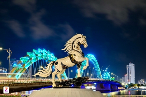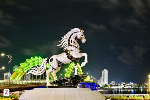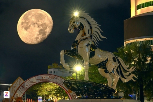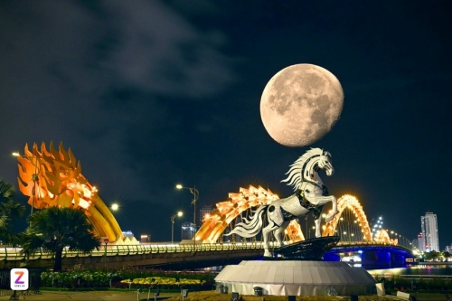 "Kim Mã 4.0" được đặt ở khu vực sàn cảnh quan phía Nam cầu Rồng (Đà Nẵng) đang là một trong những tác phẩm dẫn đầu trong "cuộc đua" linh vật Tết Nguyên đán 2026. Tối 6/1, hình ảnh đẹp huyền ảo của chú ngựa dưới bóng trăng khuyết được nhiếp ảnh gia Moon Black ghi lại. Lớp ngoài màu trắng bạc của "Kim Mã 4.0" dường như phát sáng dưới ánh đèn đêm, tạo nên hiệu ứng ấn tượng. Ảnh: Moon Black. |