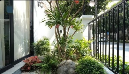 Căn biệt thự mang đậm hơi thở hiện đại pha chút tân cổ điển với tường sơn trắng nổi bật. Ảnh: FBNV |