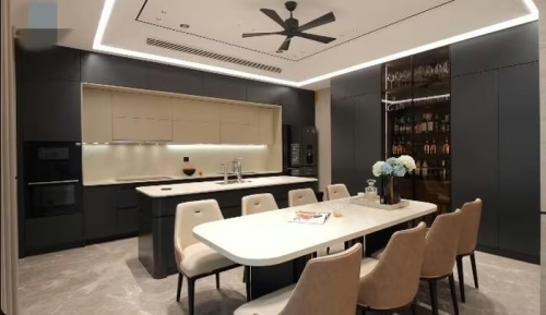 Khu bếp nối liền phòng khách theo kiểu mở hiện đại, với trang thiết bị châu Âu. Ảnh: FBNV |