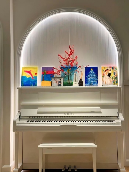 Góc đàn piano được điểm xuyết bởi các bức tranh, ảnh nghệ thuật. Ảnh: FB Dang Thu Thao |