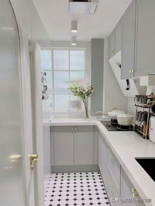 Bếp hình chữ L, giúp tối ưu diện tích mặt bàn. Ảnh: Tóutíao |
