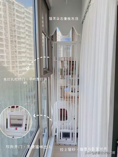 Khu vực ban công được cải tạo thành không gian riêng cho mèo. Ảnh: Tóutíao |