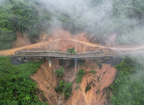 Cầu Cạn bị lệch, nghiêng và lún sau mưa lũ, cấm lưu thông. |