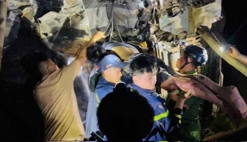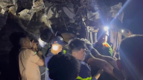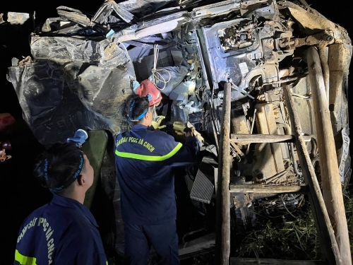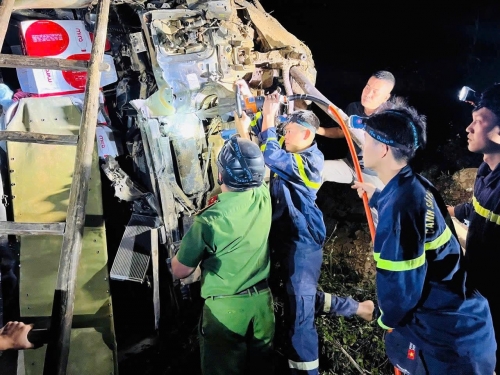 Tại hiện trường, tài xế là ông N.M.C. (SN 1980, trú tại xã Vĩnh Chân, tỉnh Phú Thọ), bị thương mắc kẹt phần thân trong cabin biến dạng nghiêm trọng. Các lực lượng chức năng đã nhanh chóng sử dụng thiết bị cắt, tách thủy lực chuyên dụng để giải cứu nạn nhân.