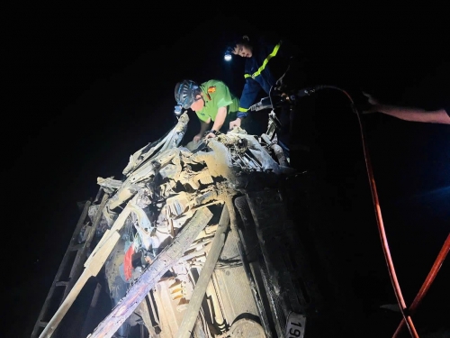 Việc giải cứu nạn nhân gặp nhiều khó khăn do đêm tối. Ảnh: Công an cung cấp |