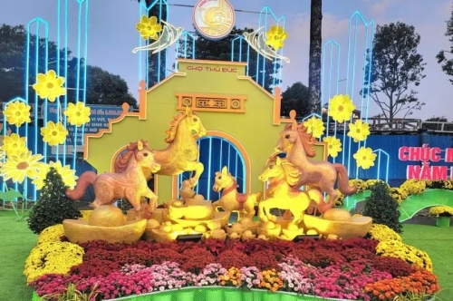 Linh vật ngựa tại khu vực chợ hoa Tết (khu vực chợ Bình Điền). Ảnh: Quang Phương |