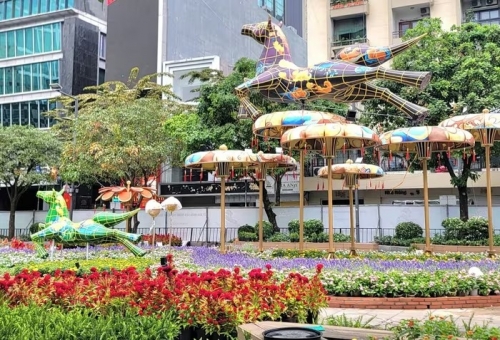 Linh vật ngựa cũng xuất hiện nhiều tuyến đường, giao lộ, điểm vui chơi công cộng, vườn hoa, trung tâm thương mại...