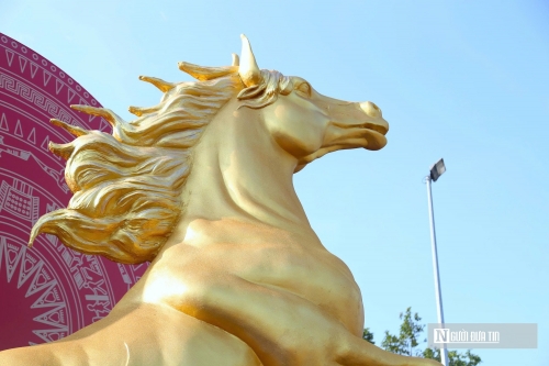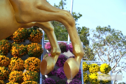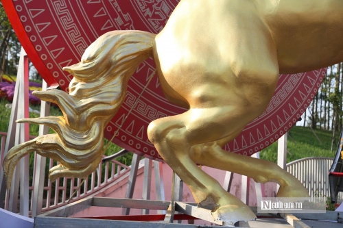 Theo đó, linh vật ngựa vàng năm nay có chiều cao khoảng 4 mét, toàn thân được sơn màu vàng đồng ánh kim. |