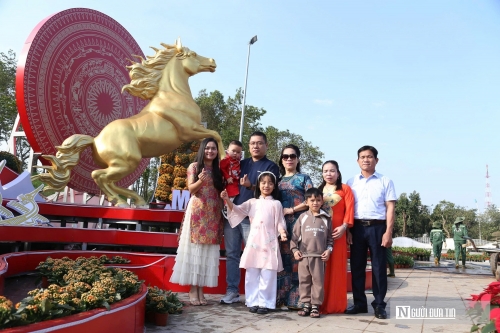 Sau khi linh vật ngựa hoàn thiện, nhiều gia đình cùng nhau chụp ảnh lưu niệm. |