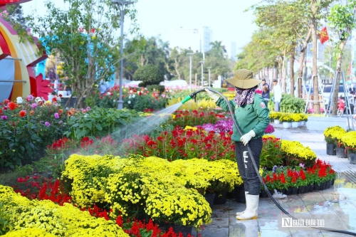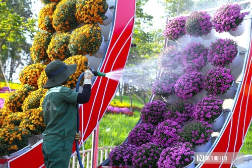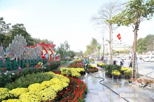 Tuyến đường hoa ở đường Hồ Tùng Mậu cũng đang được các công nhân gấp rút hoàn thành. Khu vực trung tâm tuyến đường với không gian lớn, có sân khấu cùng hàng trăm loài hoa khoe sắc. |