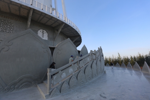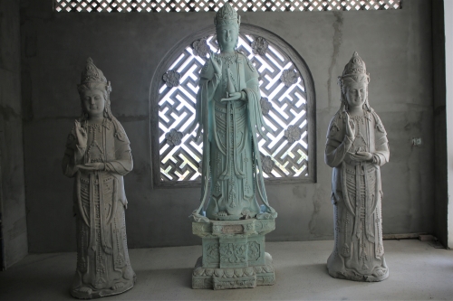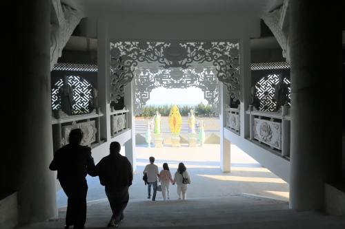 Bên cạnh tượng Quan Âm là chánh điện rộng gần 12.000m², cao tối đa khoảng 51m. |