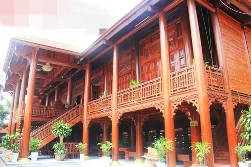 Ngôi nhà trong khuôn viên rộng 2.000m2, hoàn thành vào năm 2014, được thi công từ 500m3 gỗ lim nguyên chất với hơn 20.000 công lao động của các nghệ nhân lành nghề. Ảnh: Nguoiquansat |