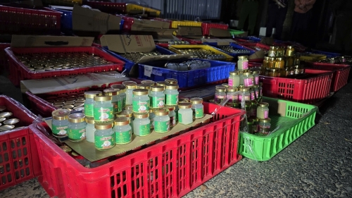 Khám xét xưởng sản xuất của Công ty TNHH Vannest (Khu dân cư và chợ Điện Dương, phường Điện Bàn Đông), công an thành phố thu giữ gần 38.000 lọ nước yến thành phẩm của 15 loại khác nhau |
