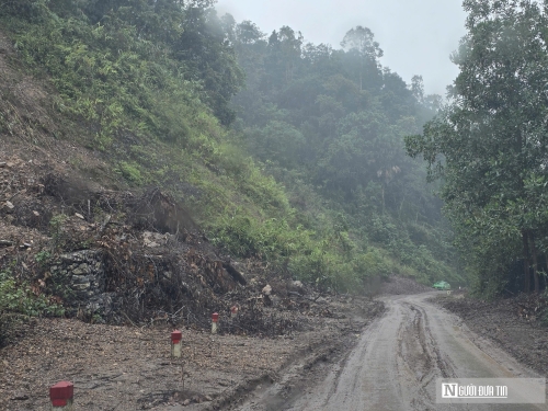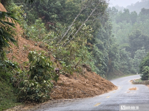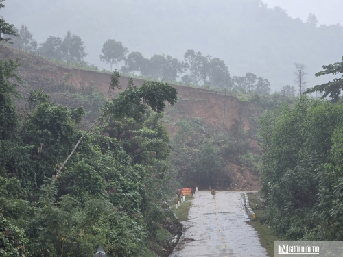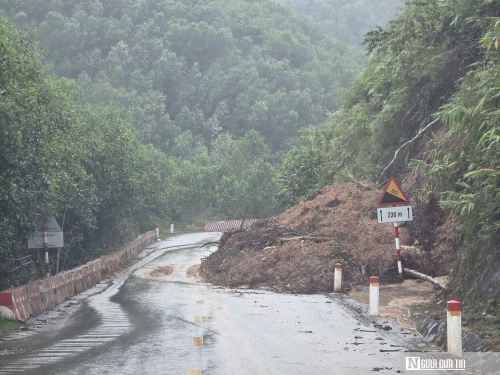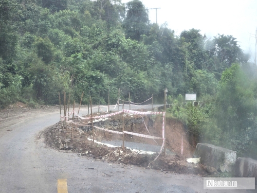 Nhiều vị trí taluy dương, âm trên quốc bị trượt, đất đá đổ xuống mặt đường, có nơi lấp 1 nửa làn đường xe chạy nguy cơ mất an toàn cao. |