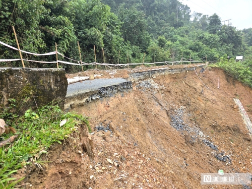 Nhiều điểm bị sạt lở ăn sâu vào tim đường tiềm ẩn nguy cơ mất an toàn. "Con đường bị sạt lở nhiều điểm khiến người dân nơi đây luôn nơm nớp lo sợ, đặc biệt là những thời điểm mưa lớn kéo dài. Chi phí vận chuyển nguyên vật liệu phục vụ nhu cầu dân sinh tăng cao hơn. Thời điểm này những xe lớn chở hàng không thể đi qua được, buộc phải chia nhỏ ra vận chuyển nhiều lần nên chi phí cũng đội lên nhiều. Chúng tôi mong cơ quan chức năng sớm lên phương án để khắc phục những điểm sạt lở trên để đảm bảo cho người và phương tiện qua lại", chị Sầm Thị Nghệ, trú tại xã Hùng Chân cho biết. |