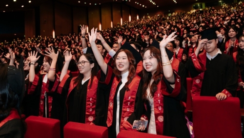 Tân cử nhân Trường ĐH Ngoại thương trong ngày nhận bằng tốt nghiệp. |
