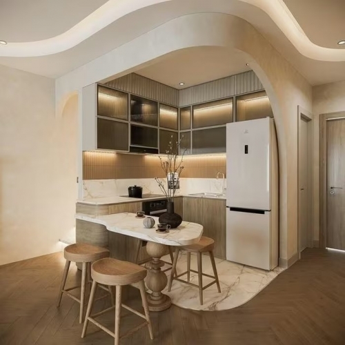 Căn hộ rộng 125m2, khu vực bếp nhỏ gọn, tiện nghi, được thiết kế đúng sở thích của mẹ nữ diễn viên. Ảnh: FBNV |