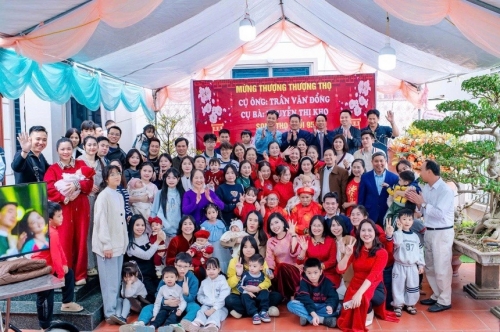 Khoảng 14h ngày 24/2 (tức mùng 5 Tết), đại gia đình 198 người của cụ ông Trần Văn Đổng và cụ bà Nguyễn Thị Kho (95 tuổi, trú tại Phú Thọ) tập trung tại sân vận động trong thôn để chụp ảnh lưu niệm đầu xuân. Sau đó, các thành viên chia thành hai đội tổ chức thi đấu bóng đá giao hữu, tạo nên không khí sôi nổi những ngày đầu năm mới.