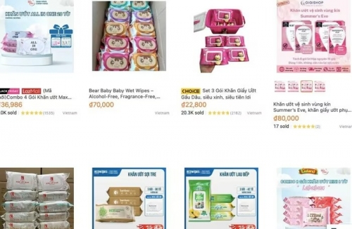 Khăn ướt đủ thương hiệu, đủ mức giá được bán rất nhiều trên các sàn TMĐT/Ảnh thegioitiepthi.danviet.vn |