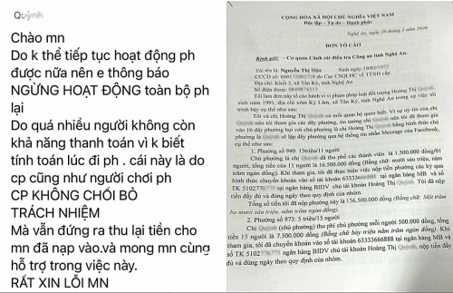 Sau khi chủ phương hụi thông báo dừng hoạt động, nhiều người đã làm đơn tố cáo gửi cơ quan chức năng. |