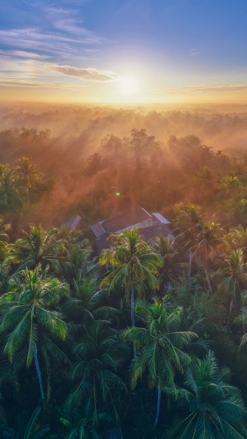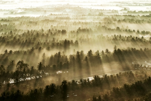 Mỗi cuối tuần, Nguyễn Thanh Tuấn (39 tuổi, quê Vĩnh Long) đều thức dậy từ 5h30, bước ra vườn dừa sau nhà. Anh gọi đó là "khoảnh khắc đẹp và thoải mái nhất của một ngày ở quê", khi không khí trong lành, sương mù phủ mờ mặt sông và ánh nắng đầu tiên len qua những tán lá dừa xanh mướt. Những khung hình mộc mạc tái hiện cảnh làng quê gần như không đổi sau hàng chục năm: vườn dừa, ruộng lúa, con sông, người hàng xóm gánh lúa, những chiếc ghe chở dừa chạy qua lại tấp nập. Để chụp được một buổi sớm đẹp, Tuấn thường phải quan sát thời tiết từ hôm trước. Trước ngày chụp, trời phải có mưa nhẹ, sáng hôm sau nắng và không gió thì mới có sương. "Nhà tôi và bà con xung quanh đều trồng dừa. Nhà cửa thưa thớt, kênh mương chằng chịt nên sáng sớm lúc nào cũng se lạnh và nhiều sương. Tôi thích cảm giác ấy, nó khiến mình thấy mình thật sự đang sống giữa thiên nhiên", Tuấn kể với Tri Thức - Znews.