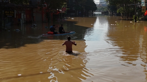 Giữa biển nước mênh mông, những mái nhà chỉ còn trơ lại phần nóc, có nơi nước đã dâng tới tận tầng hai. Đồ đạc, vật dụng nổi lềnh bềnh, nhiều hộ dân đã kêu cứu và xin cứu trợ lương thực, nước uống trên MXH. Nhiều tuyến đường bị chia cắt, xe cộ bất động giữa dòng nước xiết. Trong cảnh khẩn cấp ấy, lực lượng cứu hộ khoác áo phao, chèo xuồng ngược dòng, vượt qua những đoạn ngập sâu để đưa từng người dân ra khỏi vùng cô lập.