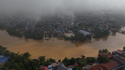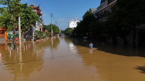 Nước sông Cầu dâng cao khiến lũ cuồn cuộn tràn vào nhấn chìm nhiều tuyến phố trung tâm ở TP.Thái Nguyên cũ (tỉnh Thái Nguyên). Nhiều hộ gia đình chỉ kịp chạy lên tầng cao, không kịp sơ tán tài sản.